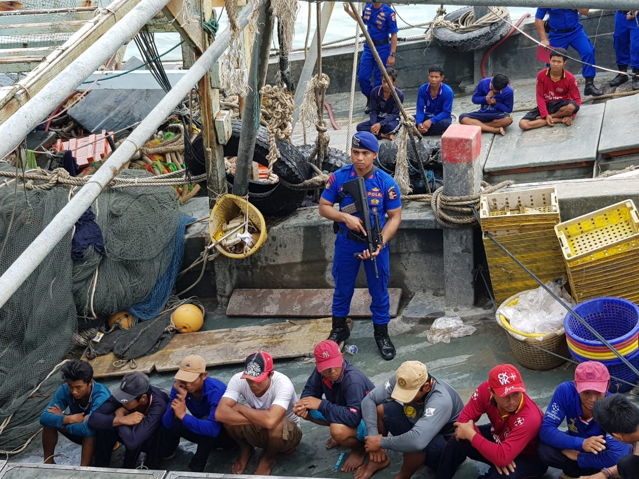“Barang bukti yang diamankan adalah 2 unit kapal ikan asing dengan muatan ikan campuran dan cumi kering dengan tersangka Nguyen Thanh Tung, warga negara Vietnam dan Dang Bao Quoc warga negara Vietnam,” ujar Erlangga.