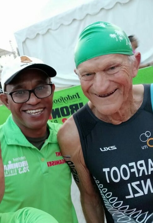 Garth Barfoot (83 thn), seorang kakek asal Selandia Baru, mampu berenang sejauh 1,9 KM, bersepeda 90 KM dan berlari sejauh 21,1 KM tanpa berhenti sama sekali.