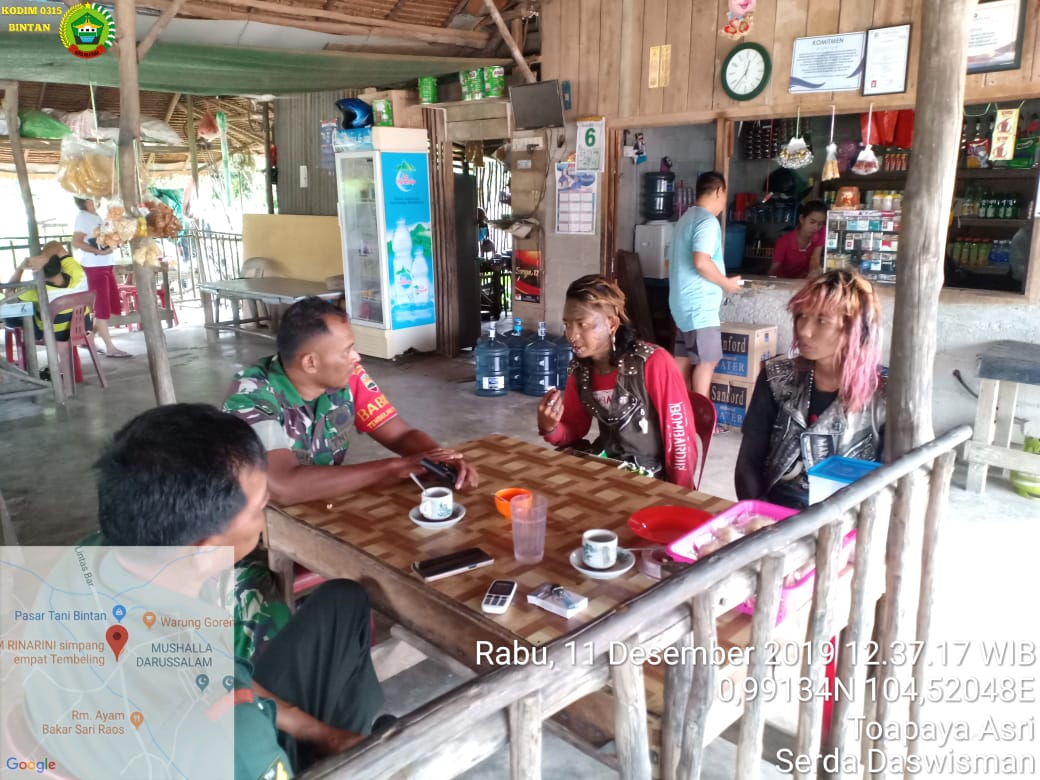 Menyikapi hal itu, dua orang personel TNI AD dari Satuan Koramil 03/Bintan Utara, Kodim 0315/Bintan, yakni Babinsa Desa Tembeling, Sertu Nendrial dan Babinsa Tembeling Tanjung, Serda Daswisman pun melakukan komunikasi sosial (komsos) dengan anak jalanan dan anak punk tersebut, Rabu, (11/12/2019).