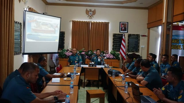 Komandan Pangkalan Udara TNI Angkatan Laut (Lanudal) Tanjungpinang Letkol Laut (P) Dani Achnisundani, S.H., M.Tr. Hanla. beserta seluruh prajurit jajaran Lanudal Tanjungpinang menerima kedatangan Danpomal Lantamal IV bersama tim di ruang VIP Lanudal Tanjungpinang, Rabu (05/02/2020).