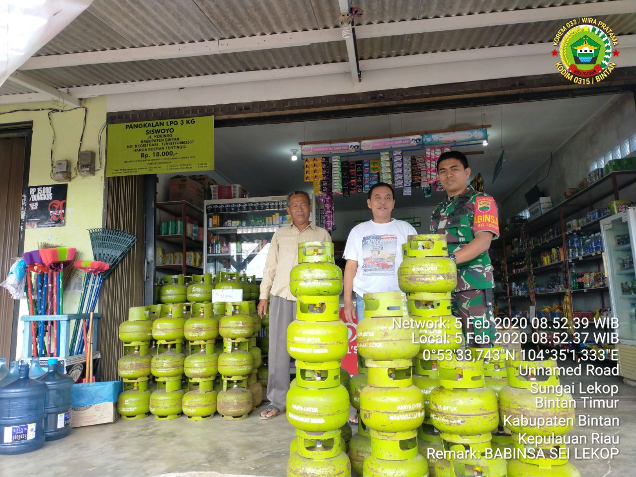 Babinsa Sei Lekop Koramil 02/Bintim, Serda Pedri Marlis melaksanakan silaturahmi ke pemilik pangkalan gas elpiji 3 kg, pada Rabu, (5/2/2020).