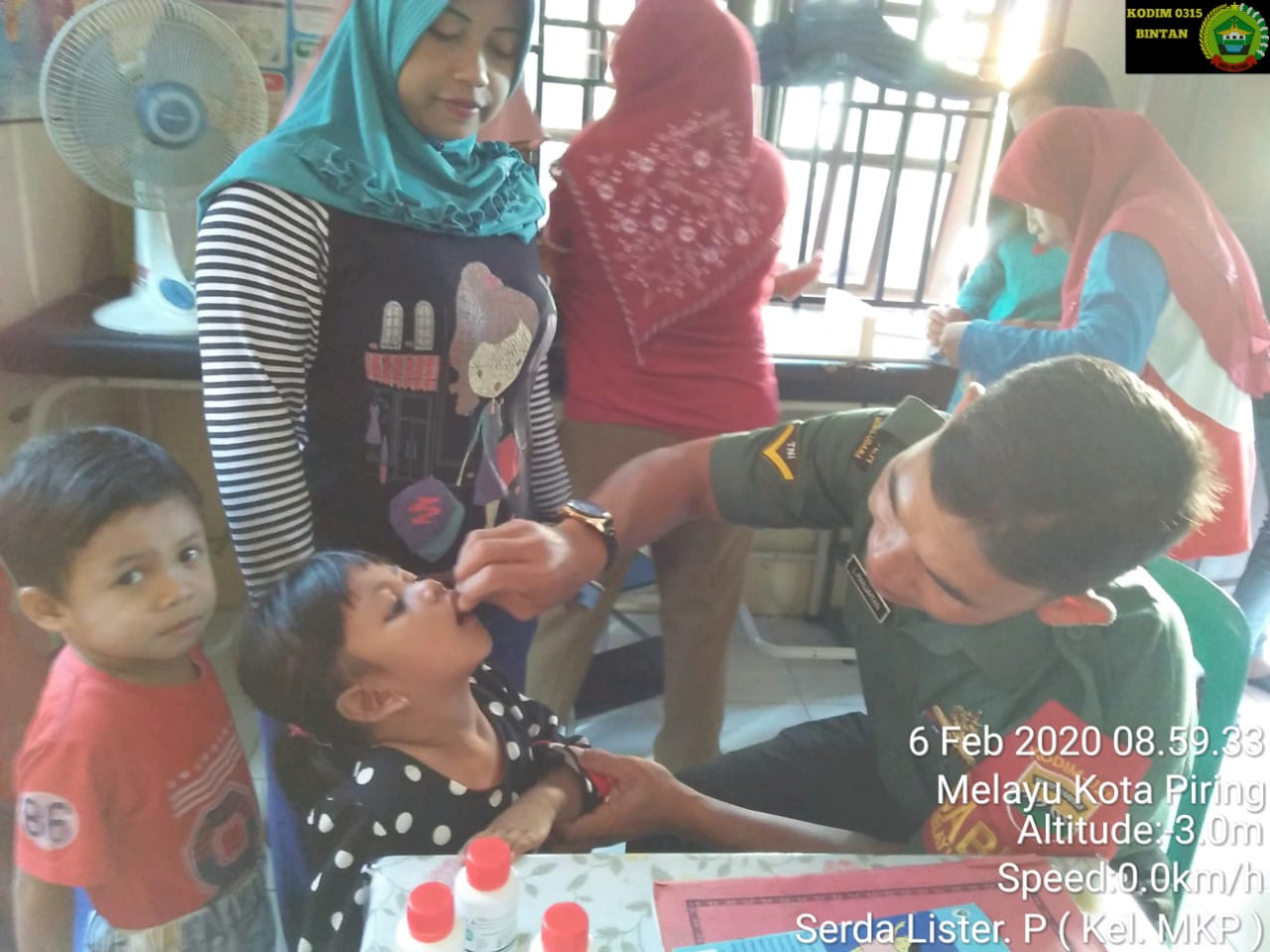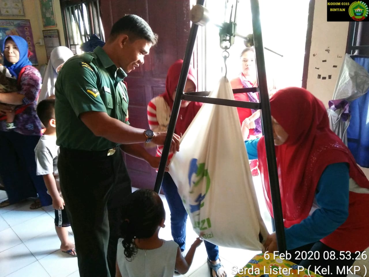 Babinsa Kelurahan Melayu Kota Piring, Serda L. Panjaitan ikut membantu pelayanan kesehatan masyarakat di Posyandu Bunga Tanjung, Jl. R.E Martadinata, KM 6, Tanjungpinang, Kamis, (06/02/2020).
