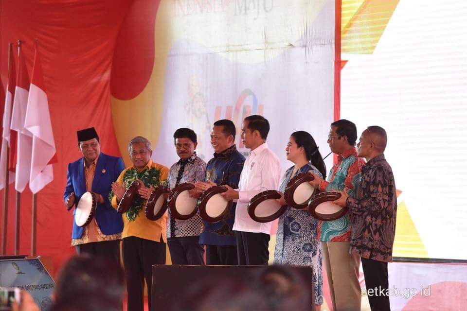 Turut hadir dalam acara kali ini Menko Polhukam Mahfud MD, Menteri PUPR Basuki Hadimuljono, KSP Moeldoko, dan Gubernur Kalsel Sahbirin Noor.