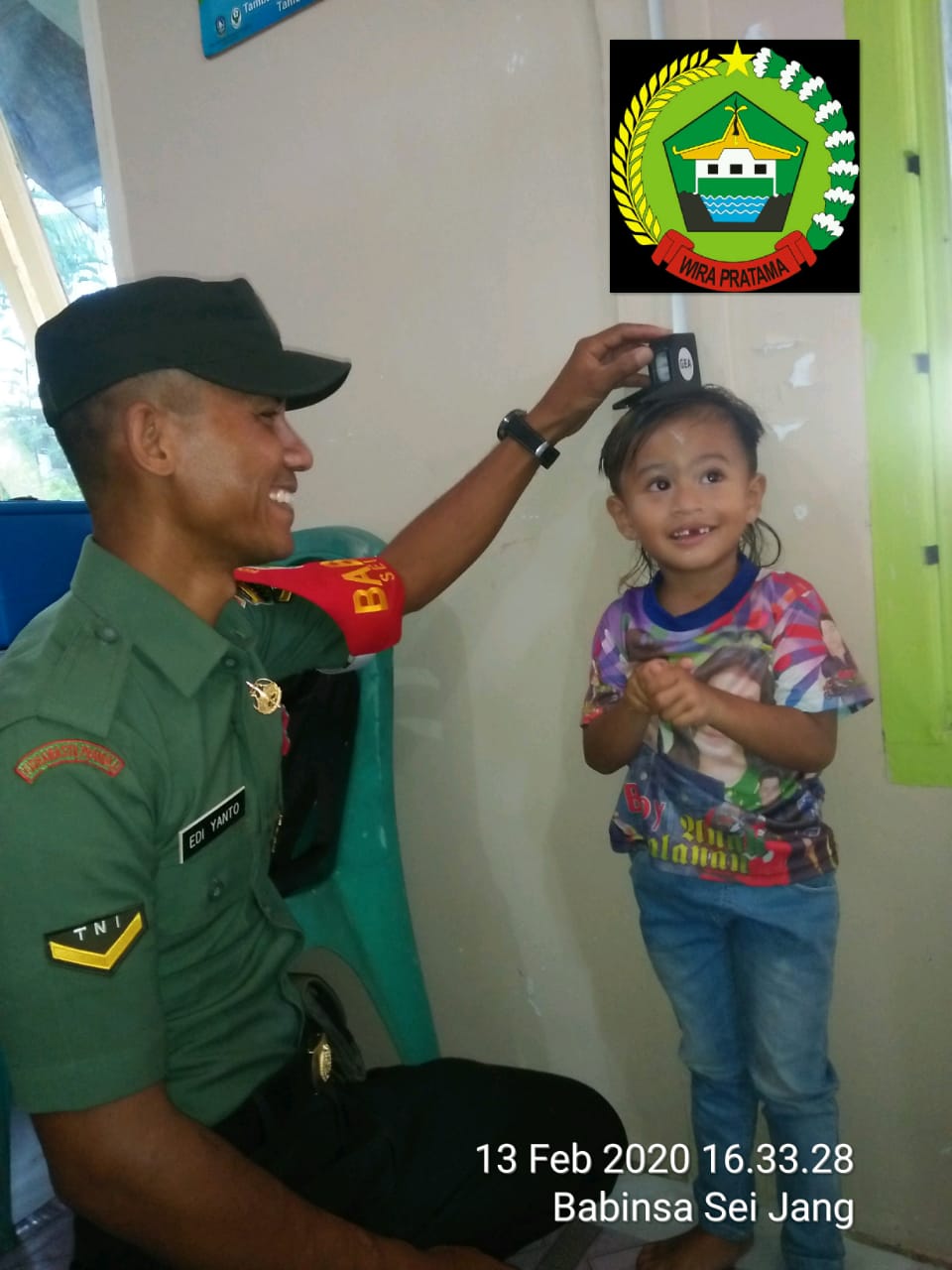 Babinsa Kelurahan Sei Jang, Tanjungpinang, Serda Edi Yanto memantau langsung kegiatan pelayanan kesehatan balita di Posyandu, Jln. Menur, Tanjungpinang, Kamis, (13/02/2020).