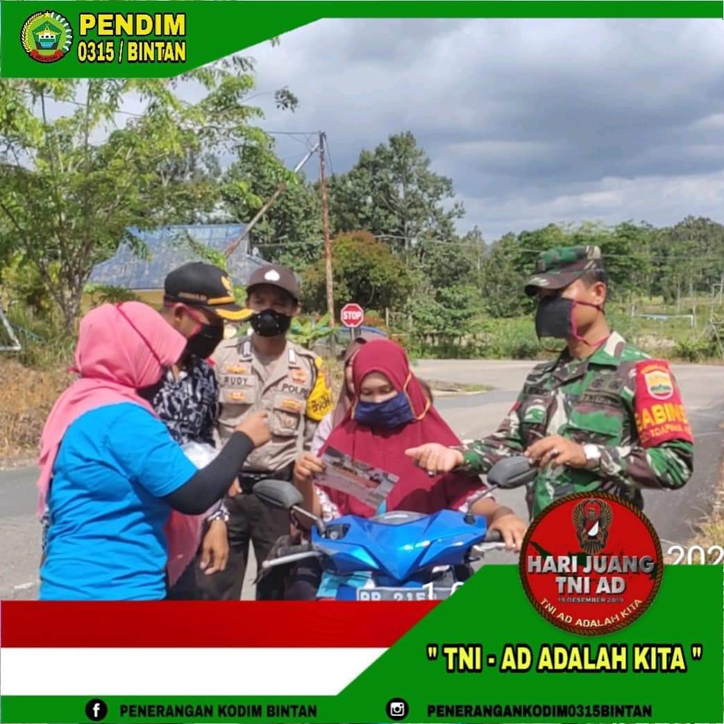 Babinsa Toapaya Induk Koramil 02/0315 Bintan, Koptu Ronal Hengki. S bersama instansi desa, petugas kesehatan dan Bhabinkamtibmas membagikan masker gratis, Kamis (9/4/2020).