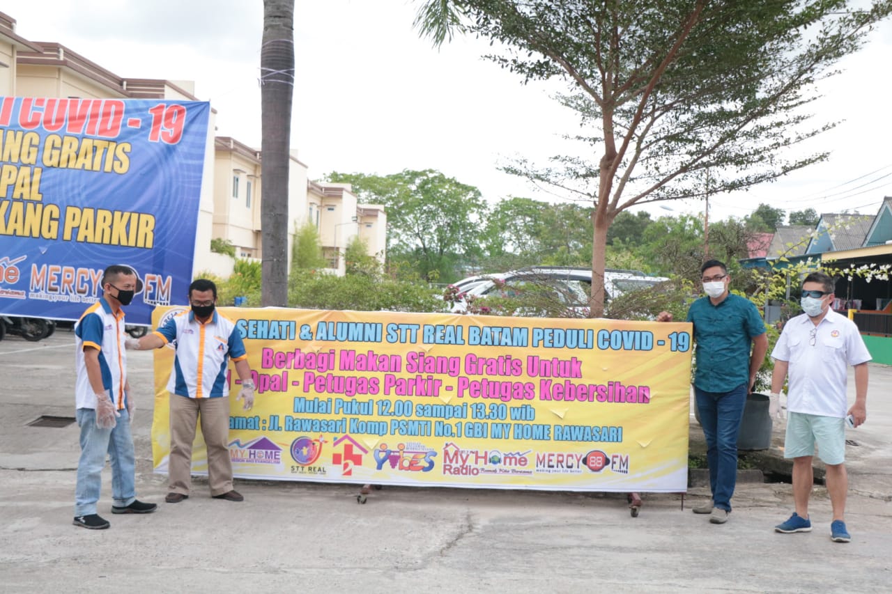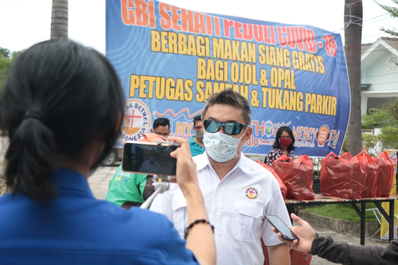 Gereja Bethel Indonesia (GBI) My Home, Rawasari, Tanjungpinang dan Alumni STT Real, Batam membagikan ratusan paket makan siang gratis kepada para pengemudi ojek online, ojek pangkalan, petugas kebersihan dan tukang parkir.
