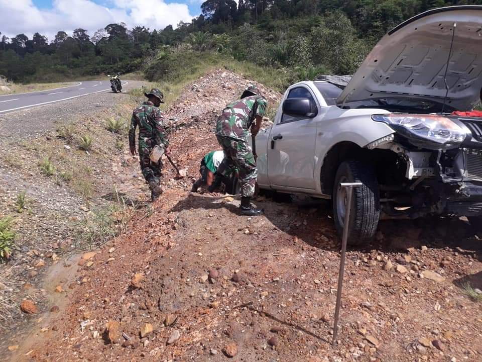 Kecelakaan Tunggal, Iwan Dan Keluarganya Langsung Ditolong Anggota TNI