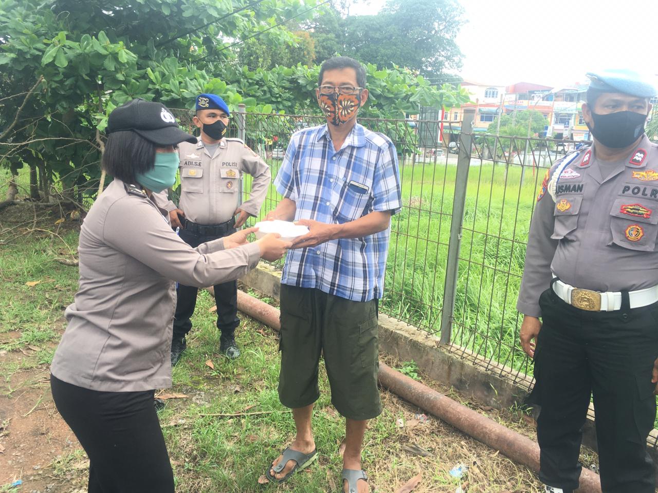 Sebanyak 200 paket nasi kotak dibagikan personel kepada warga masyarakat khususnya yang membutuhkan antara lain pengojek, pemulung, pekerja bangunan dan pekerja kebersihan.