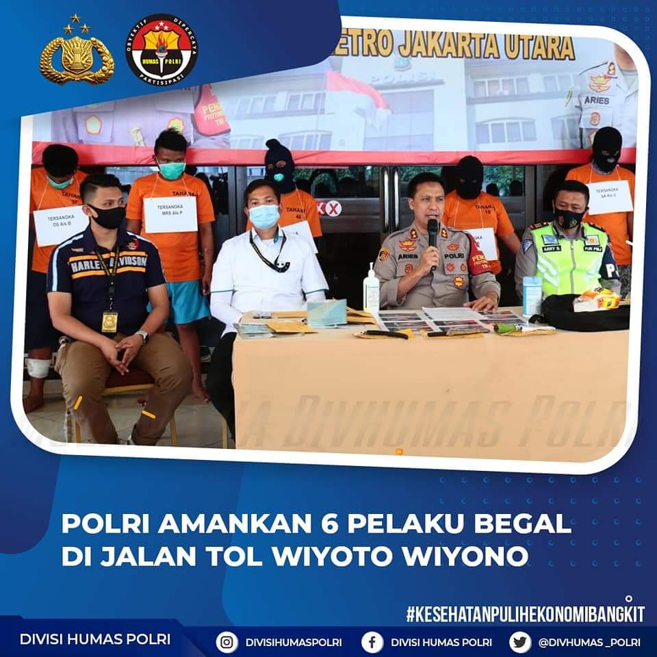 Polres Metro Jakarta Utara berhasil mengamankan pelaku begal di KM 18 Tol Wiyoto Wiyono, Jakarta Utara.