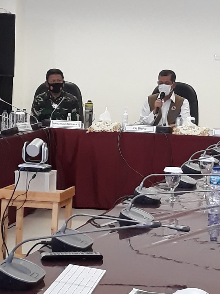 Pangkogabwilhan I Dampingi Kepala BNPB Konferensi Pers di Wisma Atlit