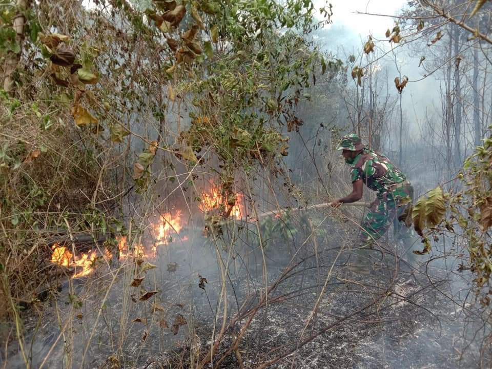 Sebanyak 20 personel Satgas Pamtas RI-PNG Yonif 125/Simbisa dari Pos Kout dipimpin Wadansatgas Kapten Inf Hendri Sihombing terjun langsung membantu memadamkan kebakaran lahan yang terjadi di sekitar PLBN Sota, Distrik Sota, Kabupaten Merauke.