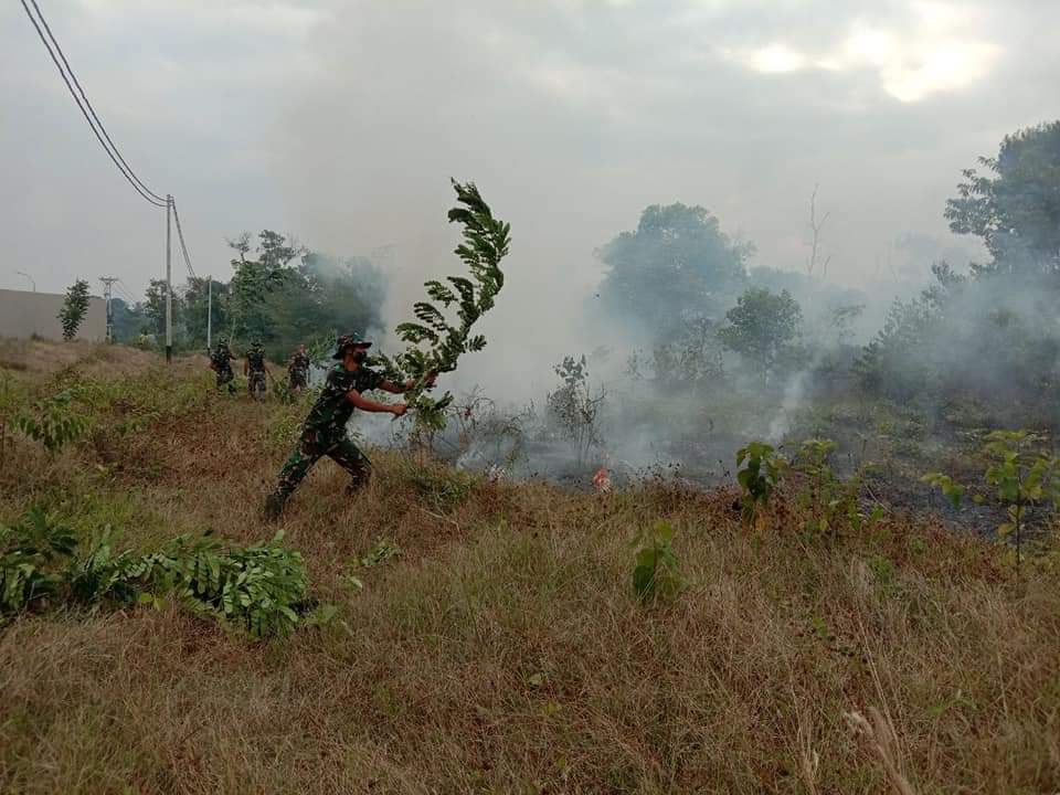 Kebakaran Lahan, Prajurit TNI AD dan Polri Berjibaku Padamkan Api