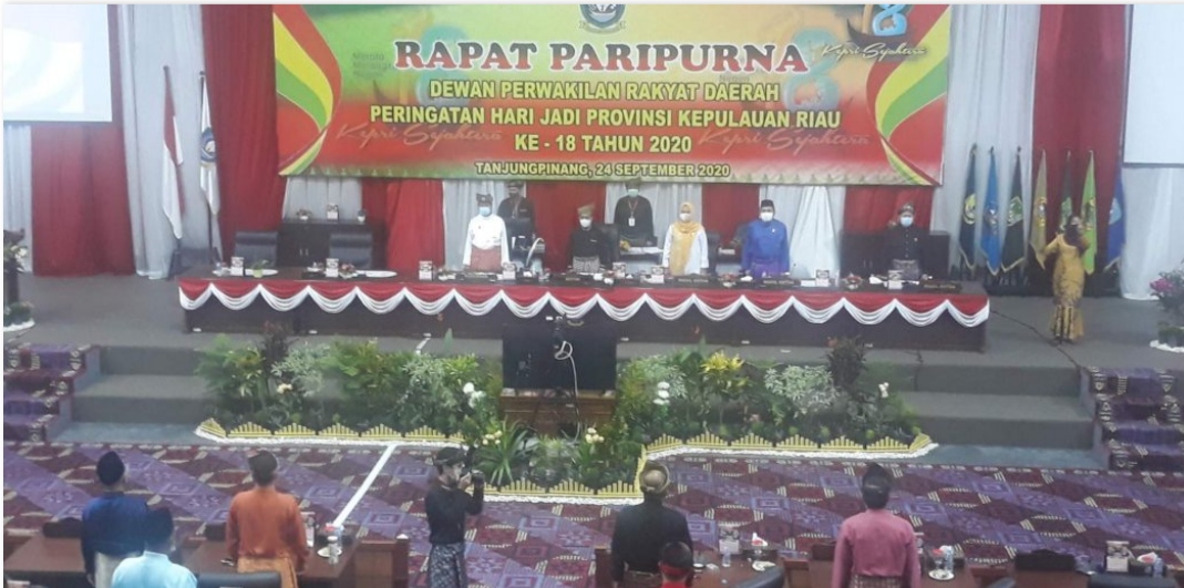 Paripurna Peringatakan Hari Jadi Provinsi Kepri kali ini hanya dihadiri undangan tertentu saja. Pantauan media ini, paripurna dilaksanakan dengan mematuhi Protokol Kesehatan.