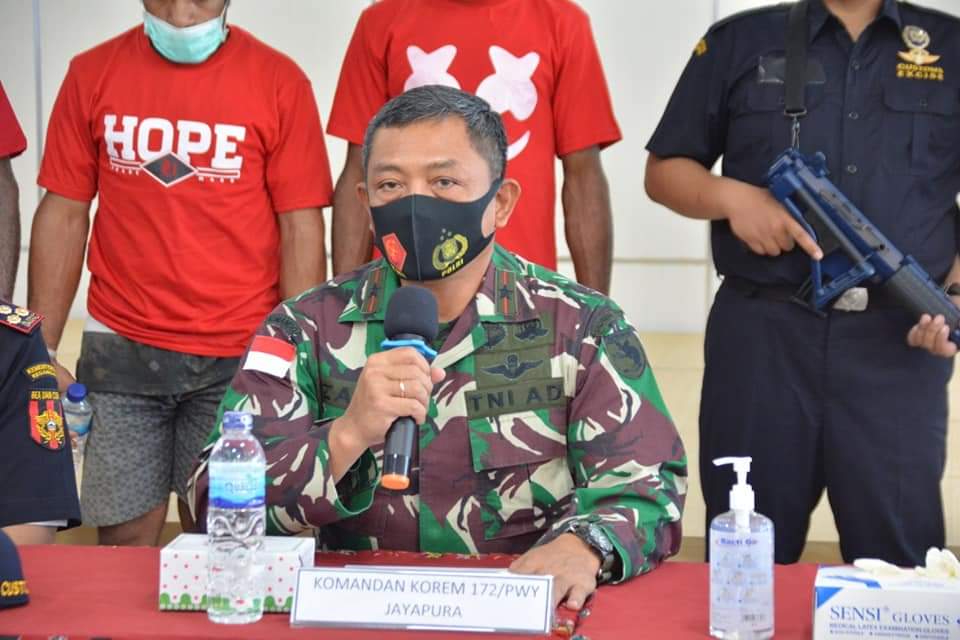 Diungkapkan Kapenrem, pernyataan tersebut disampaikan Danrem pada Rabu (21/10/2020) bersama dengan Bea dan Cukai Jayapura, Polres Keerom dan BNN Jayapura ketika menggelar alat bukti hasil sweeping ganja kering sebanyak 14 paket, kurang lebih seberat 1 Kg bersama pelakunya.