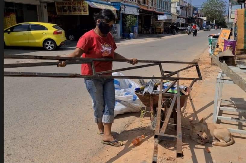 Perempuan itu bergegas mengambil besi bekas teralis pemberian laki-laki itu. Ada dua keping besi panjang. Perempuan itu meletakkan dua keping besi itu di atas gerobaknya.