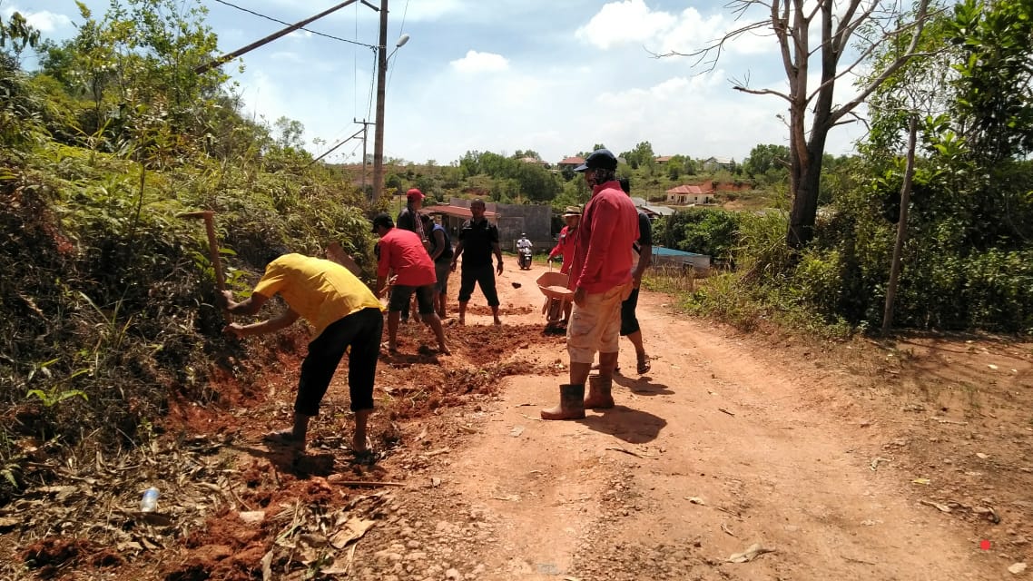 “Hari ini kita ada kegiatan gotong-royong untuk mengisi hari libur. Ada keluhan warga, kalau musim hujan tiba kerap berjatuhan warga apalagi ibu-ibu,” katanya, Kamis (11/03/2021).