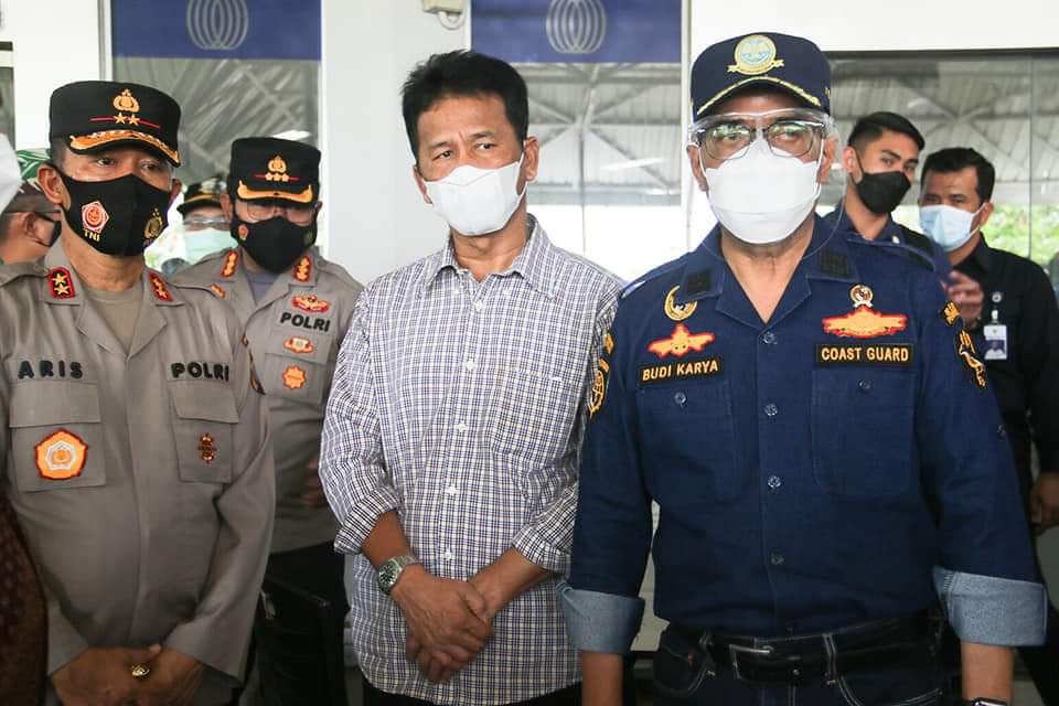 Wali Kota Batam, Muhammad Rudi, mendampingi Menteri Perhubungan, Budi Karya Sumadi, meninjau kepulangan Pekerja Migran Indonesia (PMI) melalui Pelabuhan Ferry Internasional Batam Center, Sabtu (1/5/2021).