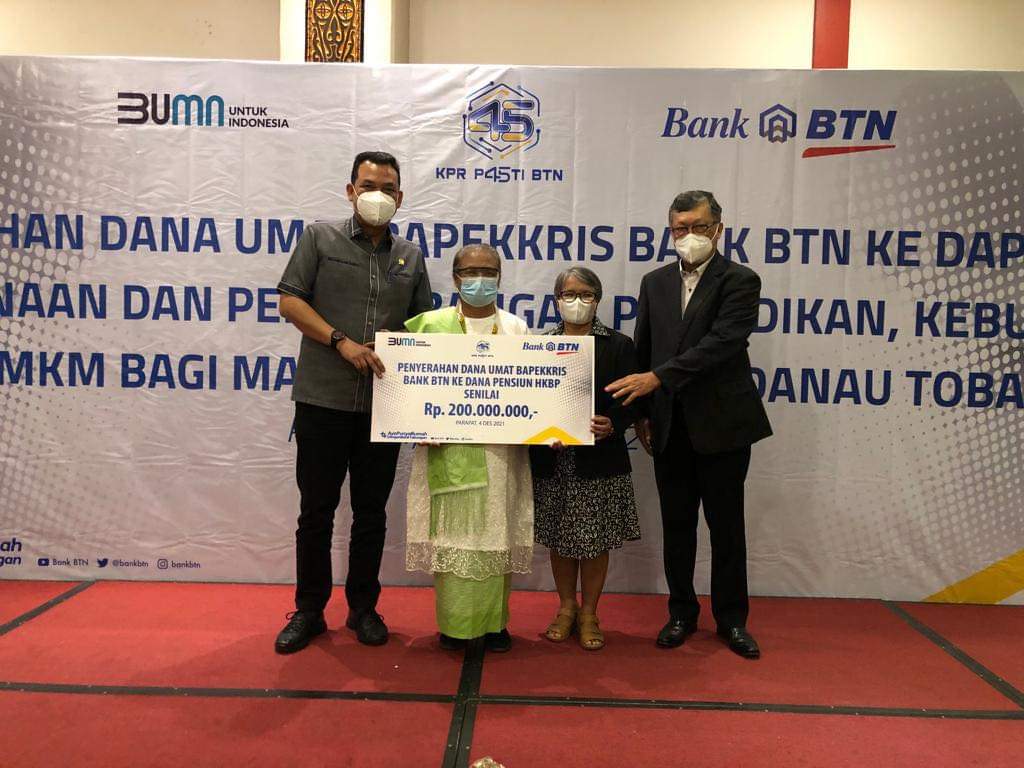 Total bantuan senilai Rp400 juta yang masing-masing terdiri dari Rp200 juta untuk bantuan dana pensiun pendeta HKBP dan Rp200 juta untuk sektor pendidikan, seni, atletik dan pelaku UMKM.