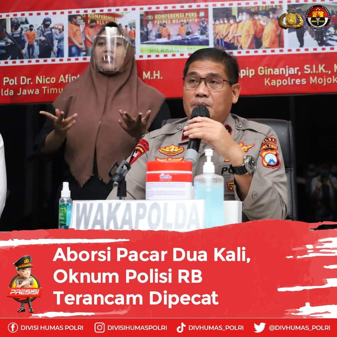 “Korban selama pacaran, yang terhitung mulai bulan Oktober 2019 sampai bulan Desember 2021 melalukan tindakan aborsi bersama yang mana dilakukan pada bulan Maret tahun 2020 dan bulan Agustus 2021,” turur Wakapolda Jatim, Brigjen Pol. Slamet Hadi Supraptoyo S.H., M.H., di Mojokerto, Sabtu (4/12) malam.