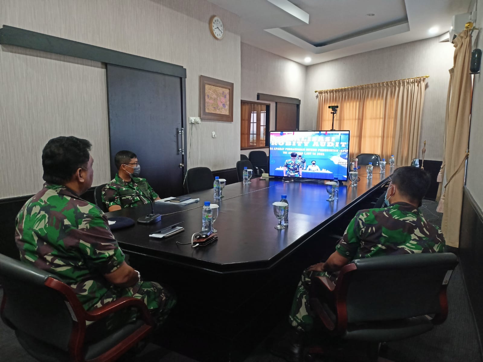 Dengan didampingi oleh para perwira staf yang memiliki tugas untuk melakukan pengawasan terhadap PPK, ULP/Pejabat Pengadaan pada kegiatan pengadaan barang dan jasa di lingkup RSAL dr. Midiyato Suratani diantaranya, Koordinator Pokli Bid. Kesla Letkol Laut (K) Edy Heryana, S.KM, Kabag Renproga Letkol Laut (K) Cahyo Wahyu Utomo, Amd.,SKM, Ka. UKPBJ Letkol Laut (K) Setyawan Widiarto, A.md dan Kabag Minmed Letkol Laut (K) M. Sarip Kodar, S.Kep.,Ns, Ka. SPI mengikuti kegiatan tersebut melalui link Vicon dari ruang rapat Karumkit Jln. Ciptadi No. 01 Tanjungpinang, Kepri.