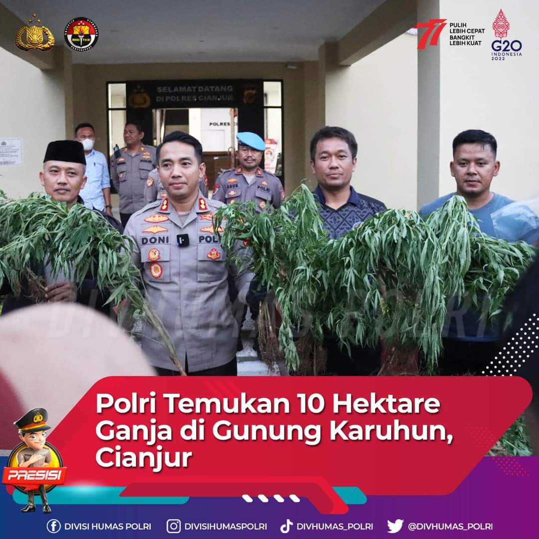 Polisi Temukan 10 Hektare Ladang Ganja di Gunung Karuhun Cianjur