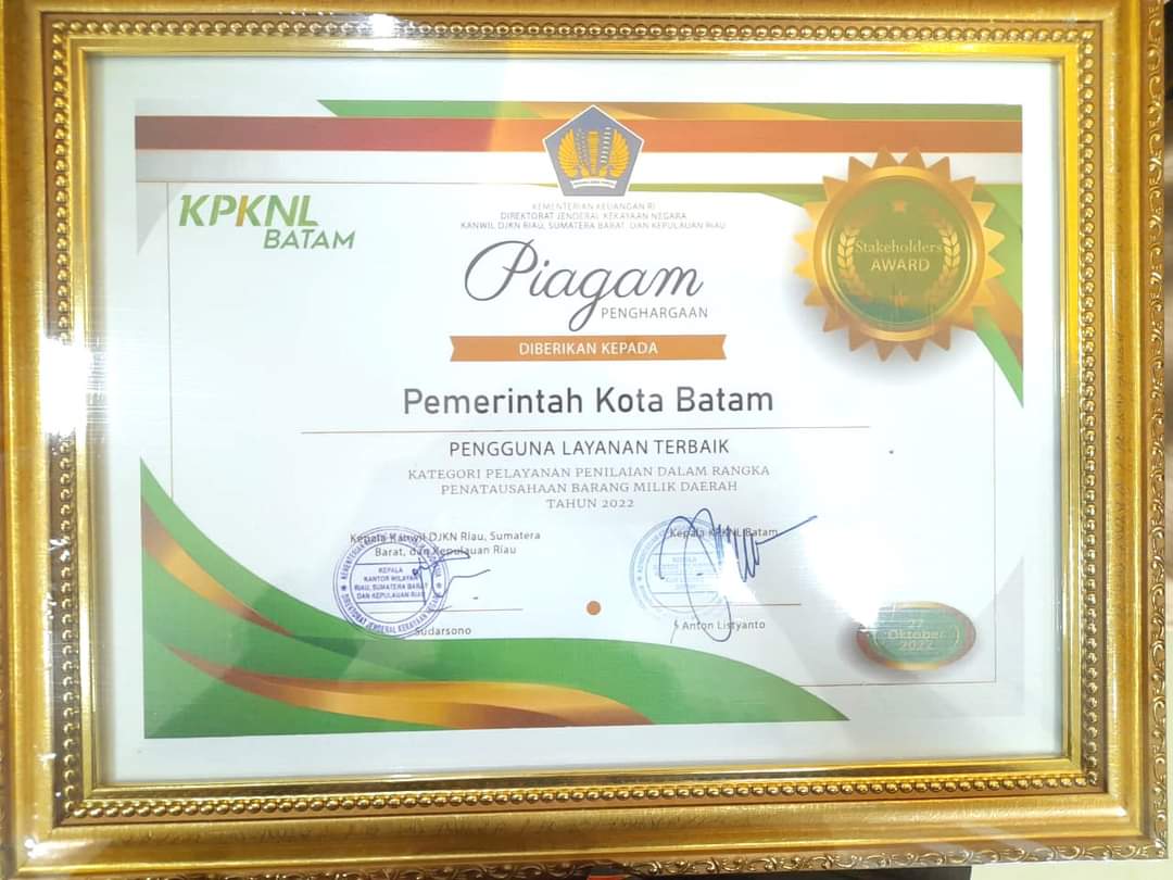 Kali ini, Pemko Batam kembali mengukir prestasi dalam Stakeholder Award 2022 sebagai Pengguna Layanan Terbaik kategori Pelayanan Penilaian Dalam Rangka Penatausahaan Barang Milik Daerah Tahun 2022.