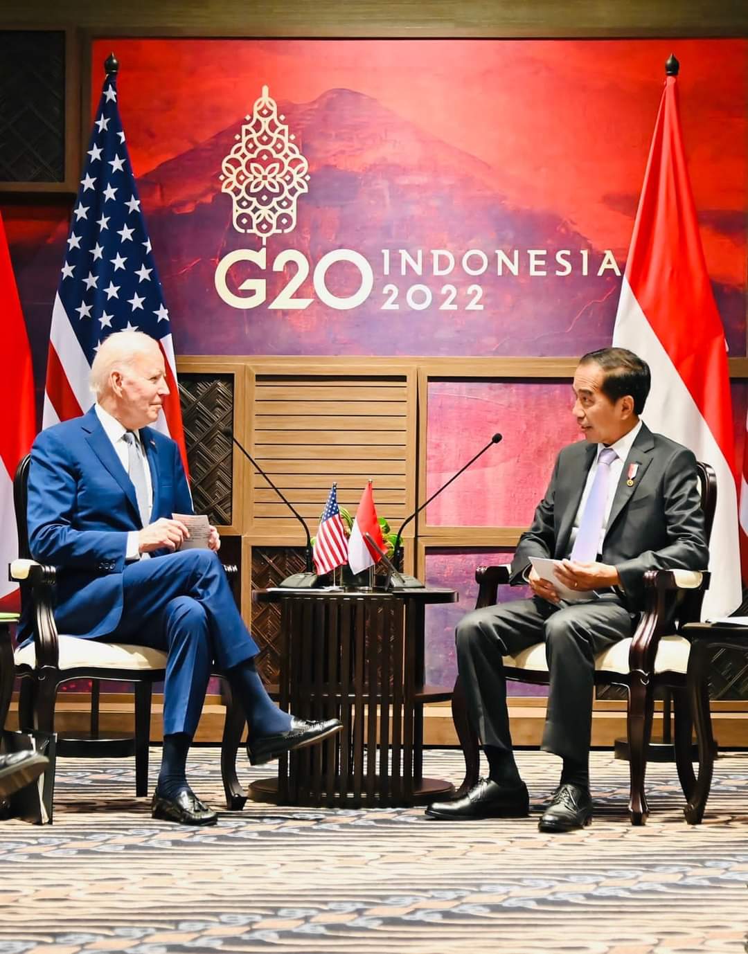 “Presiden Biden, selamat datang di Bali. Saya mengapresiasi kehadiran Presiden Biden pada KTT G20 ini,” ucap Presiden Jokowi.