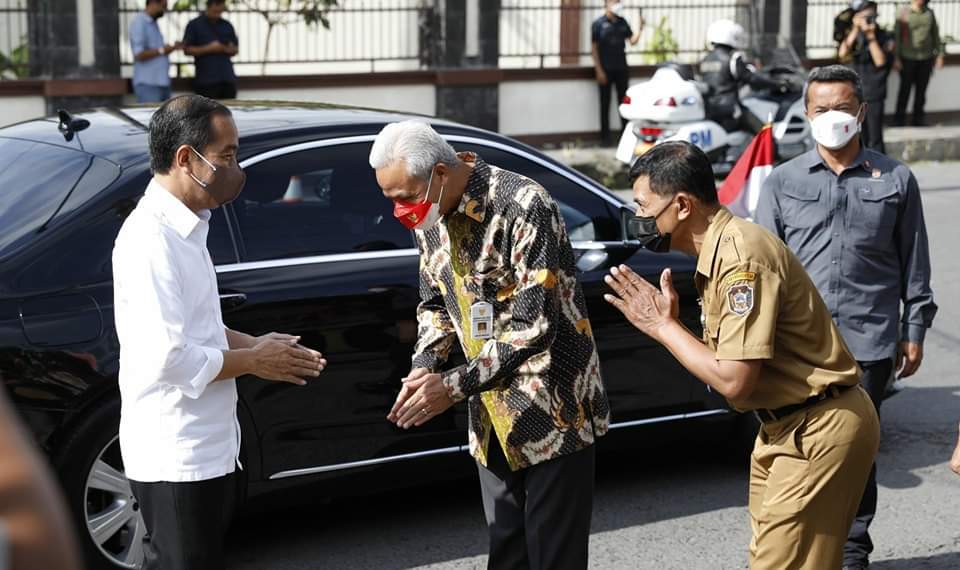 PRIMETIMES.ID, KARANGANYAR – Gubernur Jawa Tengah, Ganjar Pranowo mendampingi Presiden Joko Widodo dalam mengecek harga bahan pokok di Pasar Colomadu Karanganyar, Senin (21/11/2022).