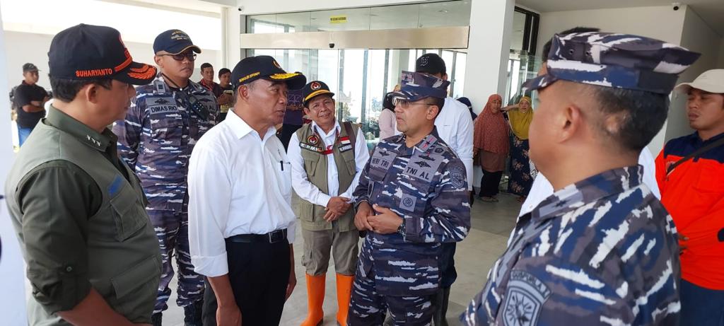 Komandan Gugus Tempur Laut (Danguspurla) I Laksamana Pertama TNI Heri Triwibowo yang saat ini masih berada di lokasi bencana, menyambut dan turut mendampingi Menko PMK RI dan rombongan meninjau ke lokasi bencana tanah longsor di Desa Pangkalan.