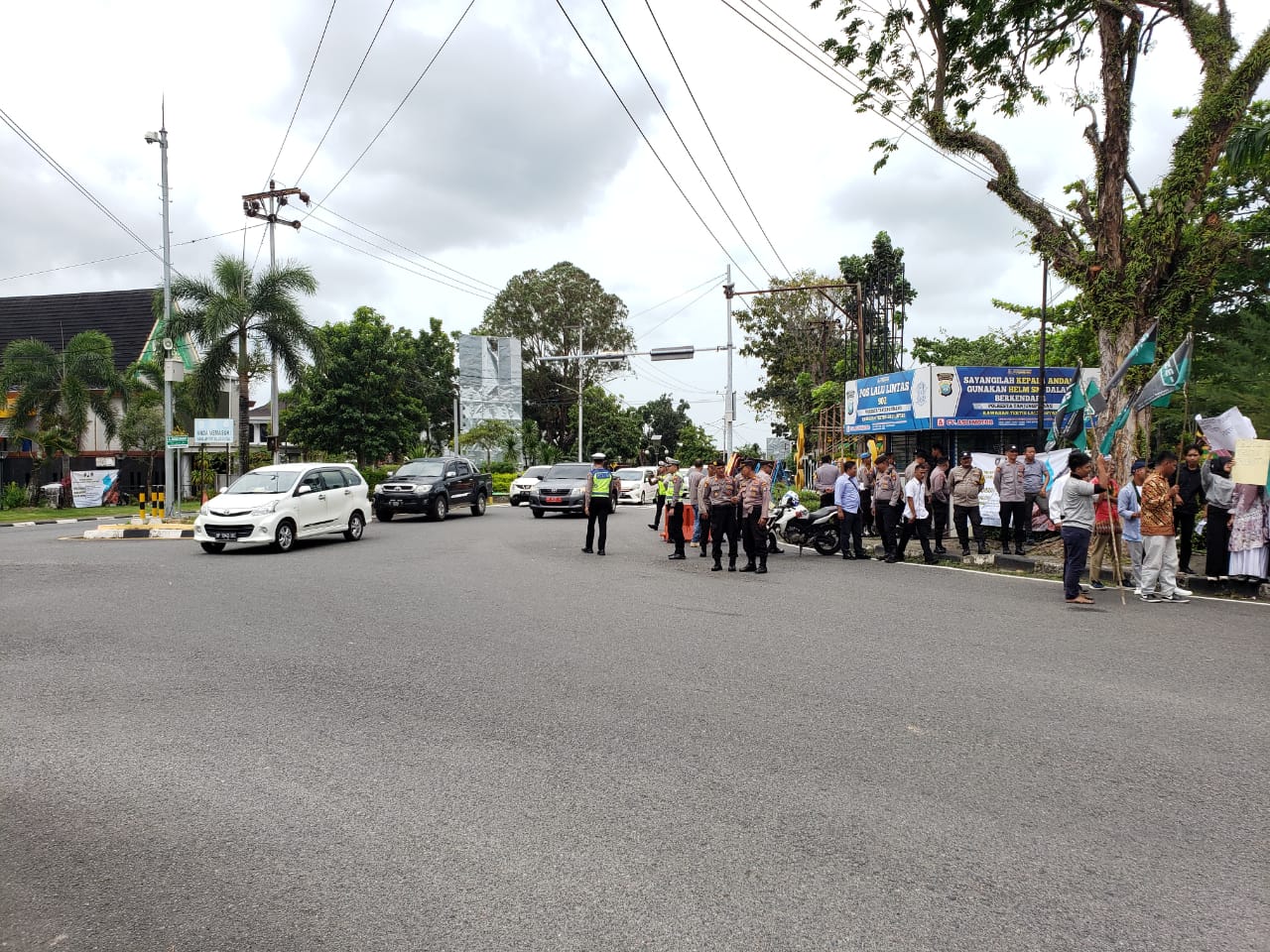 Polresta Tanjungpinang melaksanakan pengamanan aksi unjuk rasa HMI cabang Tanjungpinang-Bintan di Lapangan Pamedan, Jalan Ahmad Yani, Kota Tanjungpinang, Senin (13/3/2023).