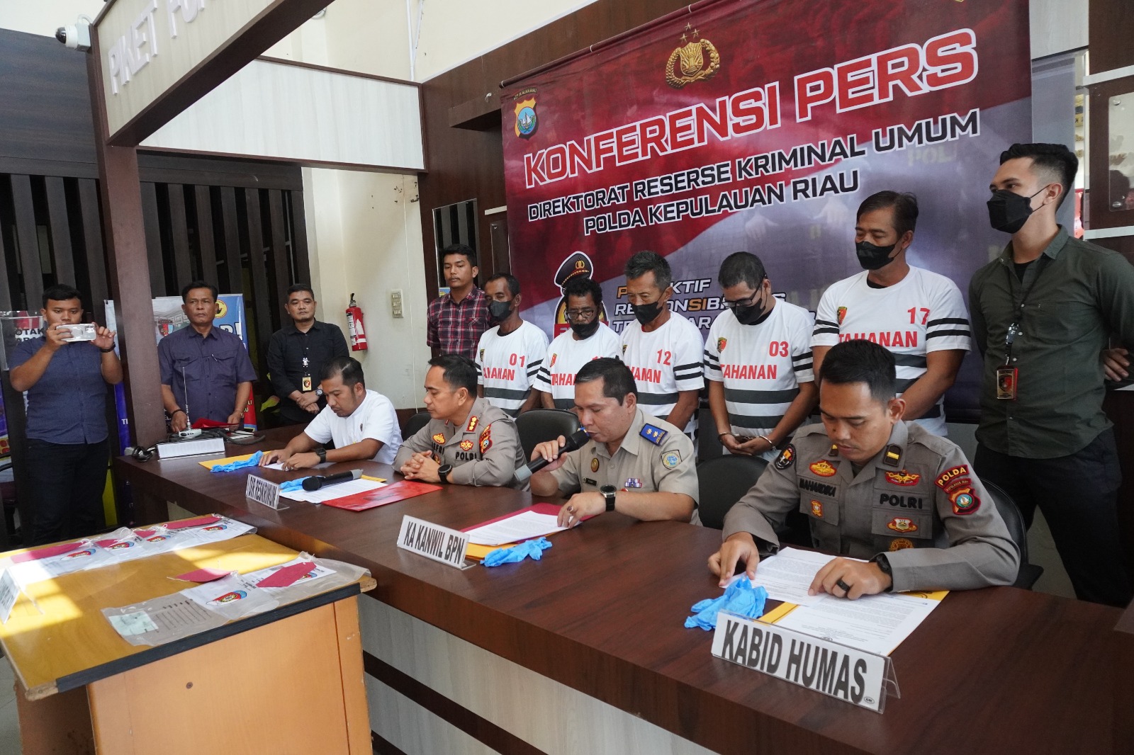 Hal ini disampaikan oleh Kepala Bidang Sengketa Pertanahan Kanwil BPN Provinsi Kepri, Yudi Hermawan, S.ST., C.Med., didampingi Dir Reskrimum Polda Kepri, Kombes Pol Jefri Ronald Parulian Siagian, S.I.K., Plt Kasi Pengendalian dan Penanganan Sengketa Irwan Toni,S.H.,M.H., dan Ps.Paur Penmas Bidhumas Polda Kepri Ipda Mahardika Sidik, S.Kom., M.M pada saat konferensi pers di Mapolda Kepri, Selasa (11/4/2023).