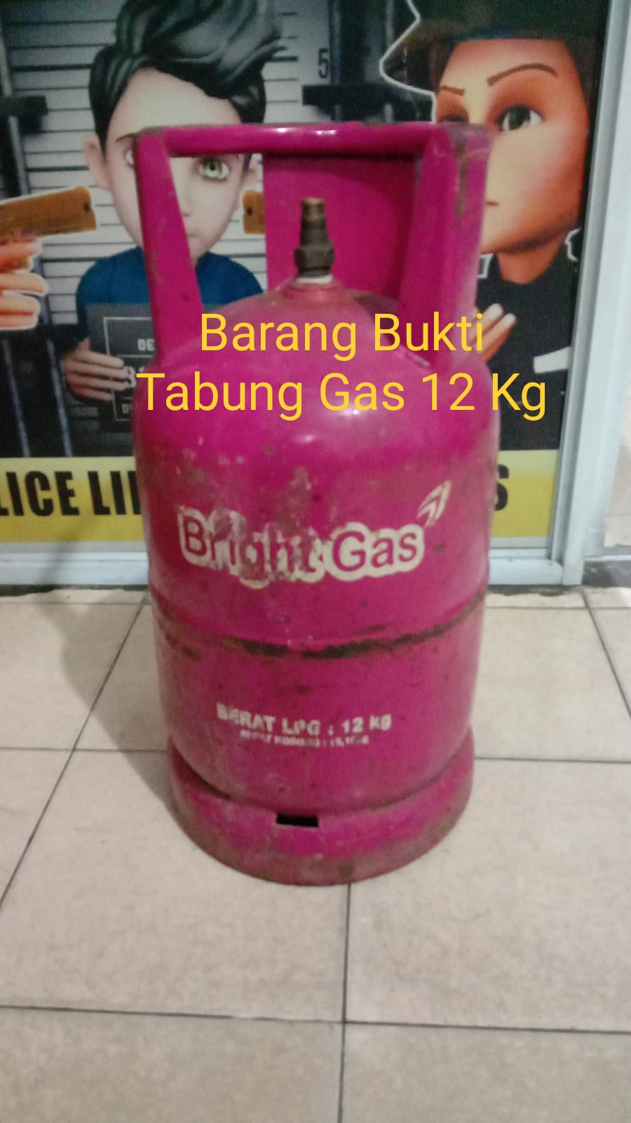 Bersama terlapor, turut diamankan barang bukti 1 buah tabung gas ukuran 12 kg.
