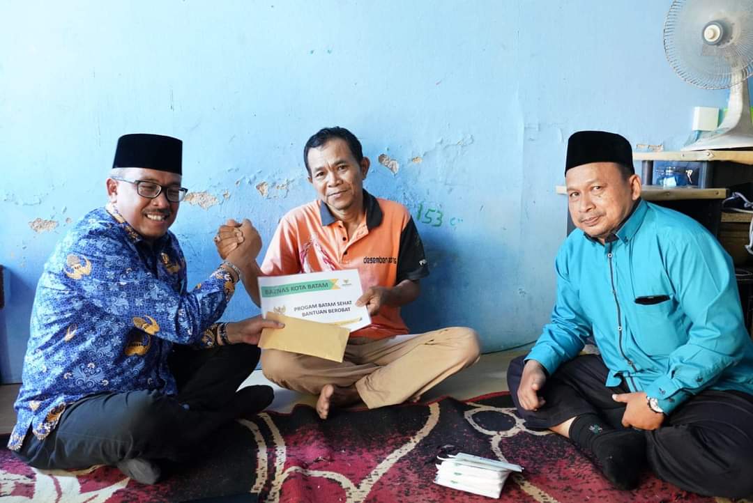 “Ada sedikit bantun dari Baznas, yang mengelola zakat sebagian besar pegawai Pemko Batam, diterima semoga bermanfaat. Semangat dan semoga cepat sembuh,” ujar Jefridin kepada T, yang mengalami sakit pada jantung dan paru-parunya.