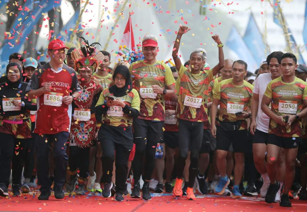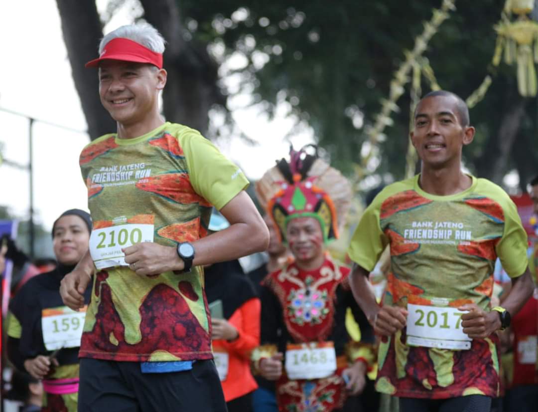 Agus lari bareng Gubernur Jawa Tengah Ganjar Pranowo dan ribuan runners yang berasal dari Jakarta dan sekitarnya, sejauh 5 kilometer.
