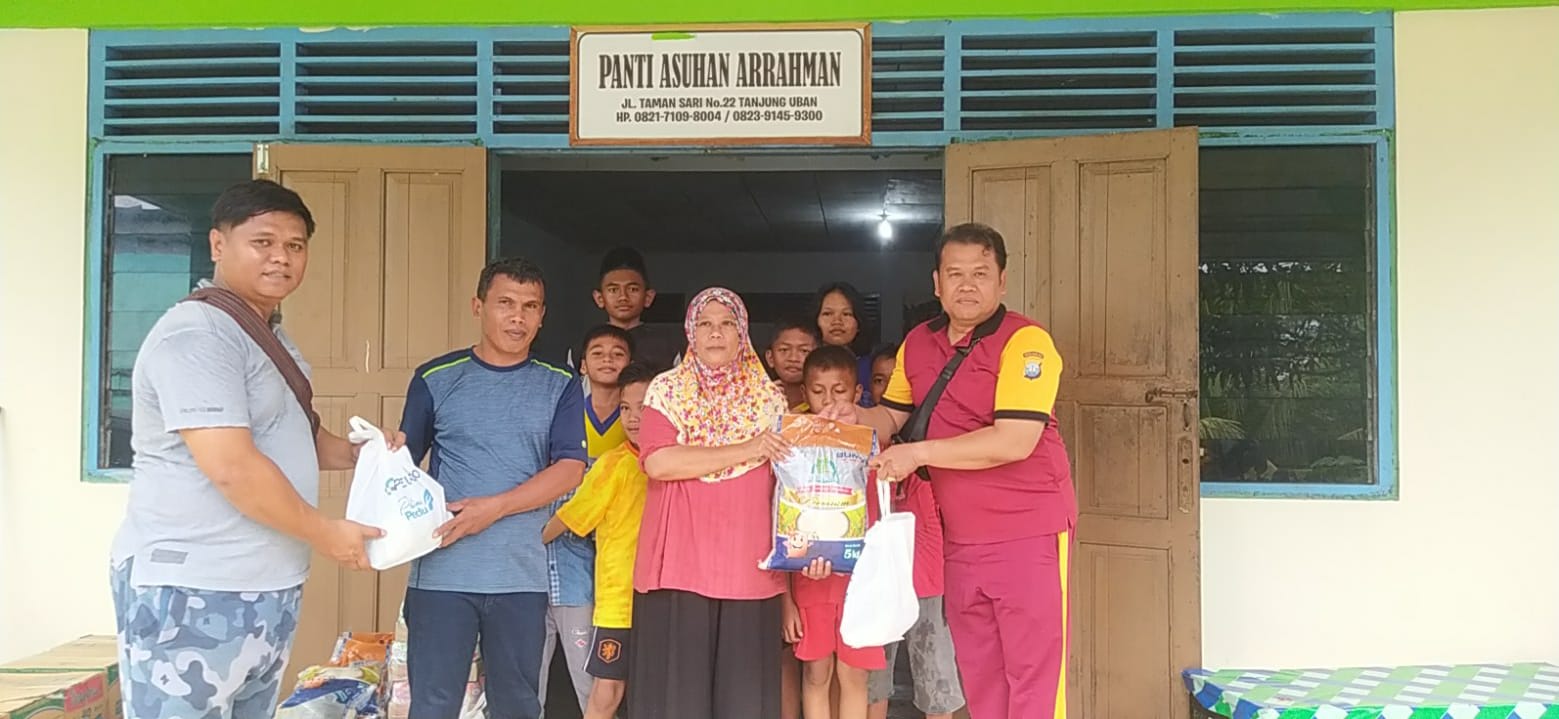 Berbagi kasih, Satreskrim Polres Bintan membagikan bantuan paket sembako dan makanan siap saji ke Panti Asuhan Yayasan Islam Ar-Rahman, Tanjung Uban, Bintan Utara, Sabtu (27/5/2023).