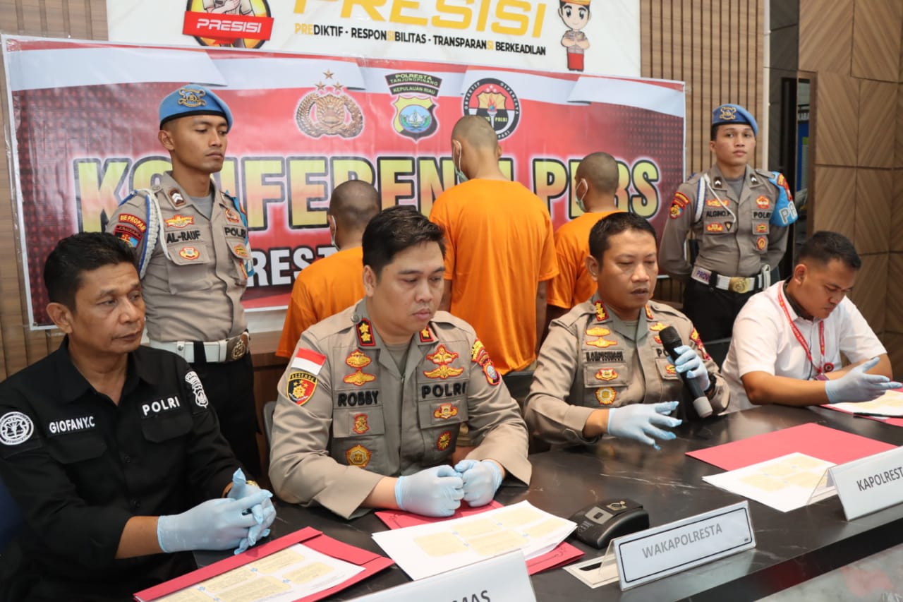 Dalam konferensi pers tersebut, Kapolresta Tanjungpinang Kombes Pol. H. Ompusunggu, S.I.K., M.Si., menjelaskan bahwa pada tanggal 6 Juni 2023, tim gabungan dari Unit Jatanras Satreskrim Polresta Tanjungpinang dan Unit Reskrim Polsek Tanjungpinang Timur berhasil menangkap tiga tersangka, berinisial ZES (29 thn), RN (29 thn) dan MAT (30 thn).