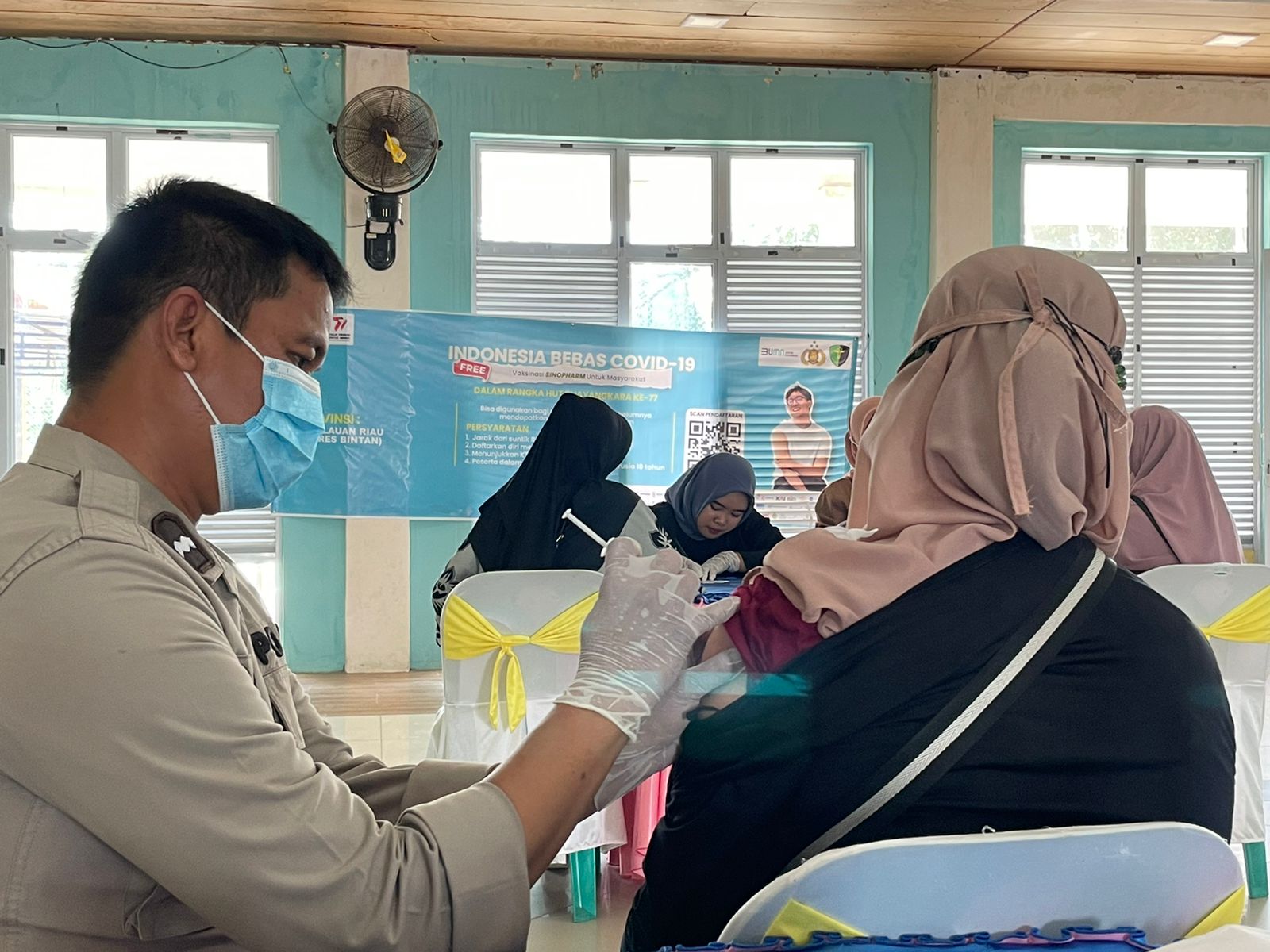 “Polres Bintan melaksanakan berbagai macam kegiatan dalam rangka memperingatan Hari Bhayangkara ke- 77 tahun 2023, salah satunya yaitu melaksanakan vaksinasi Covid-19 dengan merk Sinopharm,” ujar IPTU Alson.