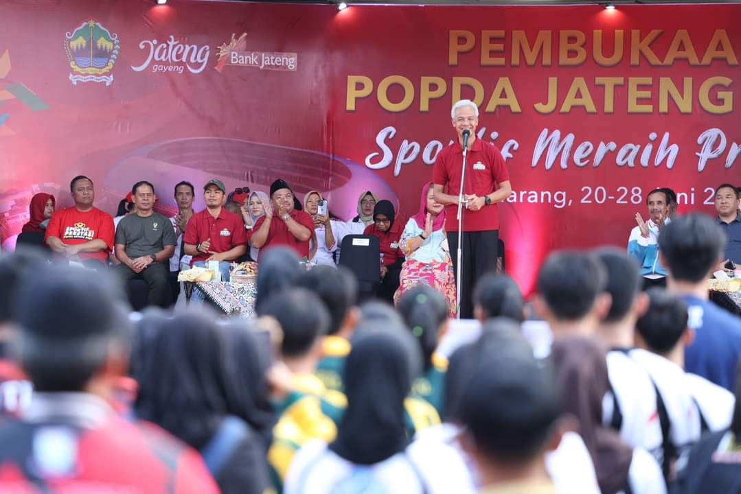 Gubernur Jawa Tengah Ganjar Pranowo membuka Pekan Olahraga Pelajar Daerah (POPDA) Jawa Tengah tahun 2023 sekaligus meresmikan Kawasan Olahraga Jatidiri, Selasa (20/6/2023).