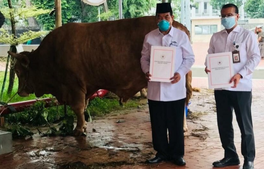 “Di Jakarta, Bapak Presiden akan memberikan sapi kepada Masjid Istiqlal yang jenis sapinya simental, beratnya adalah 1,2 ton atau 1.200 kilogram, jenisnya jantan,” ucapnya.