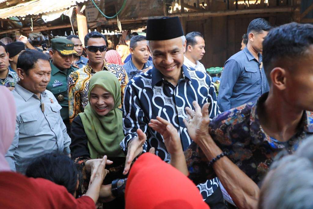 PRIMETIMES.ID, PEKALONGAN – Ekpresi cinta warga Pekalongan kepada Ganjar Pranowo tampak saat Gubenur Jateng itu mendampingi Presiden Joko Widodo (Jokowi) meninjau Pasar Grogolan, Pekalongan, Selasa (29/8/2023).