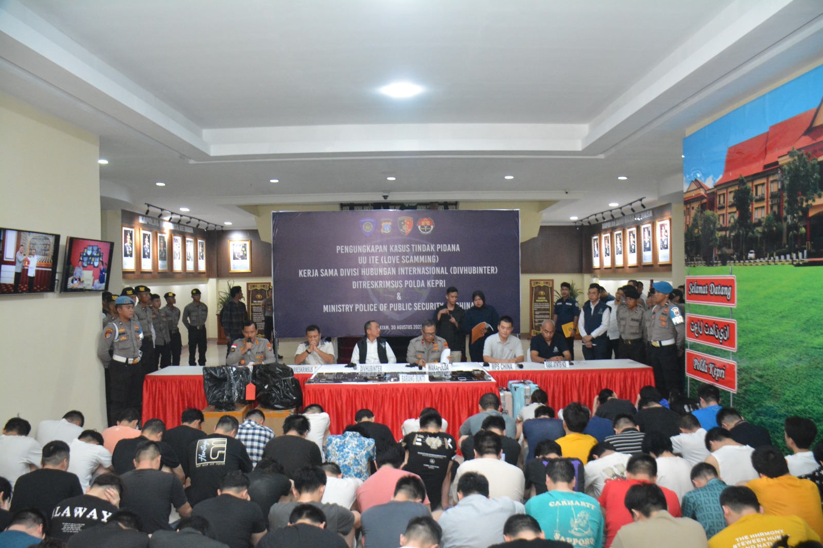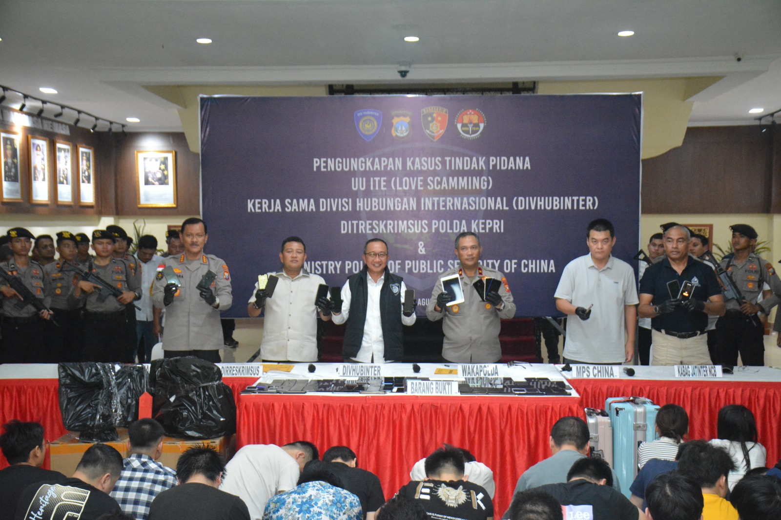 Sebanyak 88 (delapan puluh delapan) orang tersangka terdiri dari 5 (lima) orang perempuan dan 83 (delapan puluh tiga) orang laki-laki berwarga Negara Republik Rakyat Tiongkok berhasil diamankan oleh Ditreskrimsus Polda Kepri, hasil kerja sama atau joint operation dengan Ministry Police of Public Security of China dan Divhubinter Polri, tentang pengungkapan kejahatan transnational crime yang menjadi perhatian pemerintah Indonesia, khususnya Kepolisian Negara Republik Indonesia atas dugaan tindak pidana Love Scams.