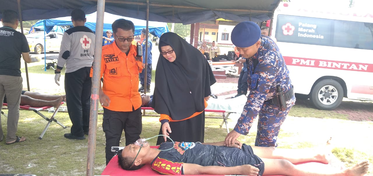 Simulasi penyelamatan korban kecelakaan laut tersebut dilakukan oleh tim reaksi cepat BPBD Kabupaten Bintan yang tergabung dengan keanggotaan Pemkab Bintan, TNI, Polri, Satpol PP, Damkar, PMI, dan Pramuka dari Kwarcab Bintan serta Basarnas Tanjungpinang.