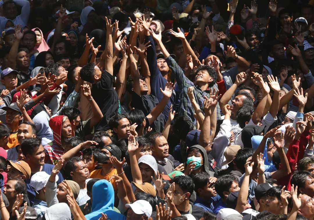 “Sudah siap dapat apem? Bismillahirrahmanirrahim,” ucap Ganjar sambil melemparkan apem kepada warga.