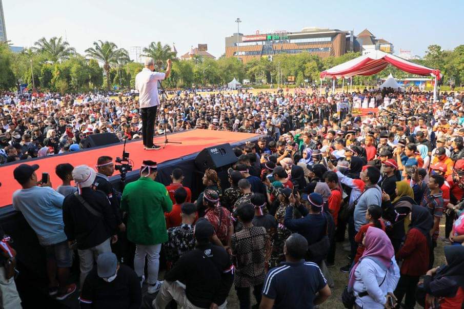 Hal itu disampaikan Ganjar saat menghadiri acara Jambore Kebangsaan Kawal Pemilu Damai 2024 di Lapangan Pancasila Simpang Lima Semarang, Minggu (3/9/2023).