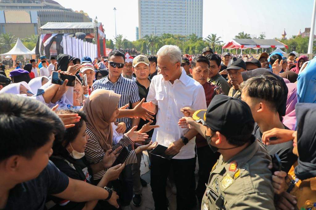 PRIMETIMES.ID, SEMARANG – Gubernur Jawa Tengah, Ganjar Pranowo mengajak seluruh masyarakat Jateng menyongsong Pemilu 2024 dengan suka cita. Ajang lima tahunan itu harus menjadi pesta rakyat yang menyenangkan, bukan menjadi ajang perpecahan.