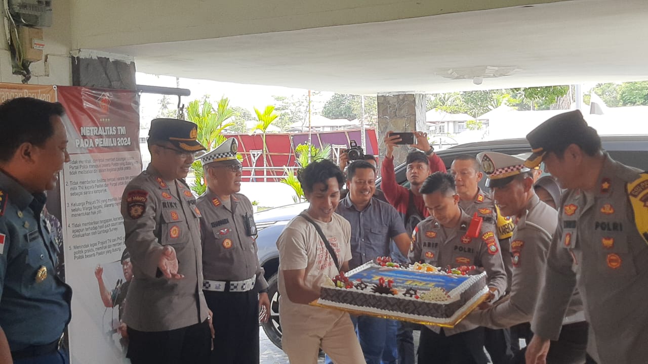 Momen istimewa pun tiba saat Kapolres Bintan mengucapkan selamat ulang tahun sembari memberikan kue ulang tahun kepada Danlanal Bintan dengan diiringi lagu “Selamat Ulang Tahun” ditambah lagi dengan tepuk tangan yang membuat suasana menjadi riuh meriah.