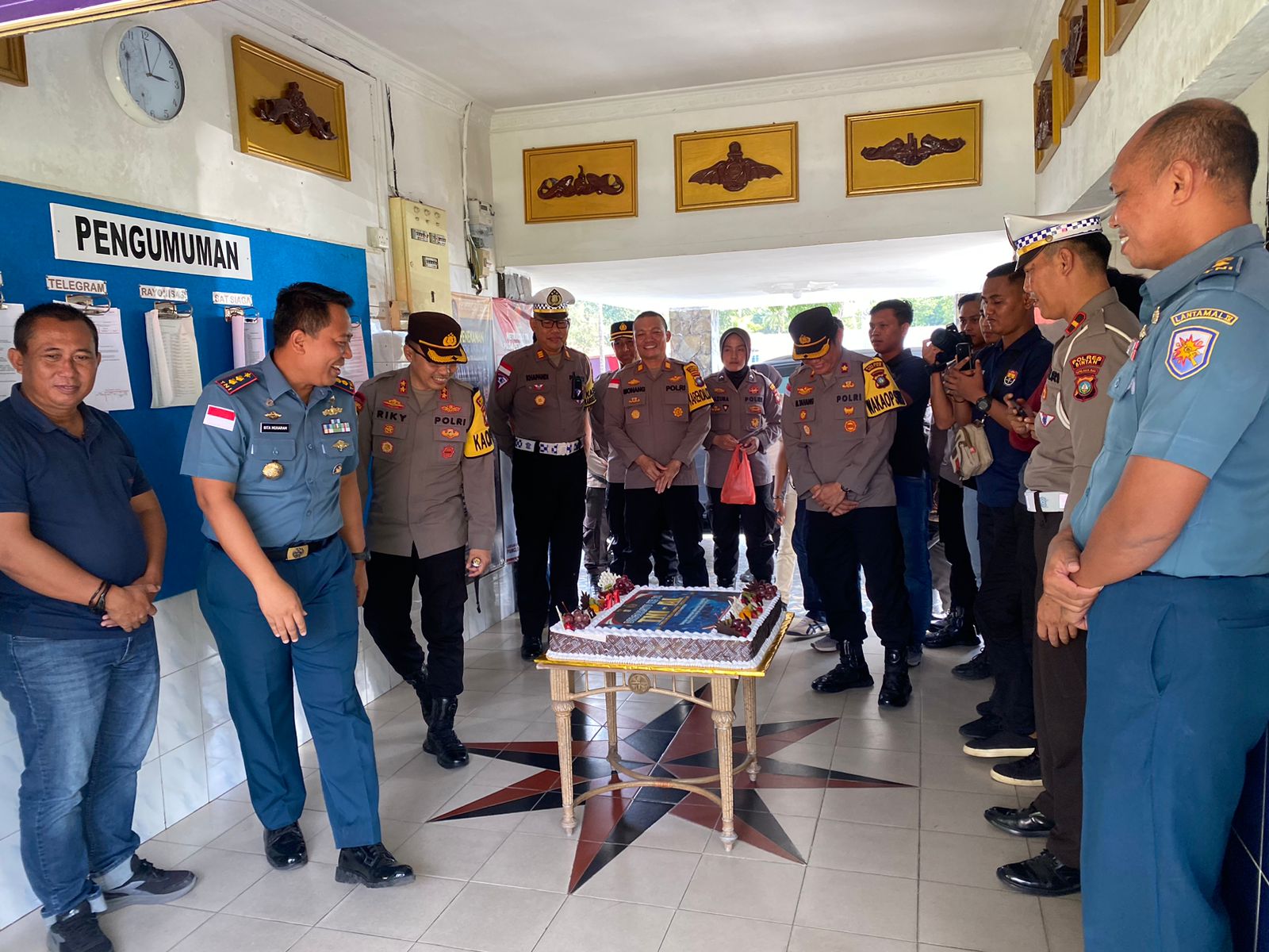 “Hari ini saya bersama dengan Wakapolres dan seluruh Kapolsek mendatangi Mako Lanal Bintan dengan untuk mengucapkan selamat ulang tahun kepada institusi TNI-AL,” ujar Kapolres Bintan.
