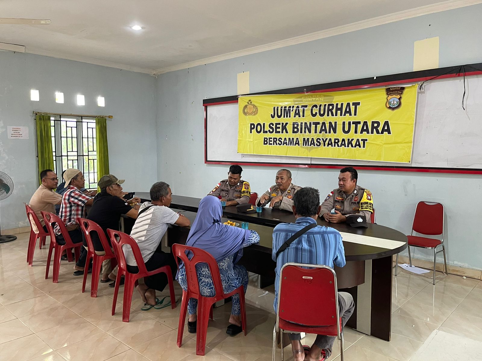 Untuk Jumat ini, Polsek Bintan Utara melaksanakan Jumat Curhat di Balai Pertemuan Kantor Lurah Tanjung Uban Selatan yang dipimpin oleh IPDA R Edi Suratman Panit I Unit Binmas Polsek Bintan Utara dan dihadiri oleh masyarakat Tanjung Uban Selatan.