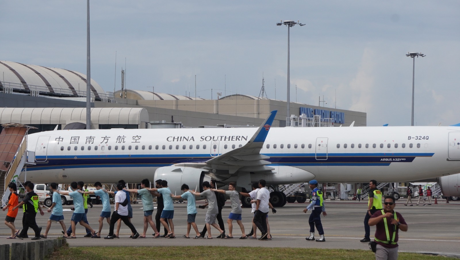 Upacara serah terima 153 (seratus lima puluh tiga) tersangka Warga Negara Asing (WNA) Republik Rakyat Tiongkok kepada Ministry of Public Security of Republik Rakyat Tiongkok (RRT) dilaksanakan di Bandara Internasional Hang Nadim, Batam, pada Rabu (20/9/2023).