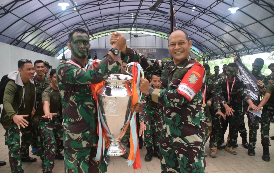 Sementara Letda Laut (P) Theodore Sinaga selaku Dantim Skuadron 800 pada kejuaraan Skuadron Warrior tampak dengan gagahnya mengangkat piala bergengsi Skuadron Warrior Wing Udara 1.